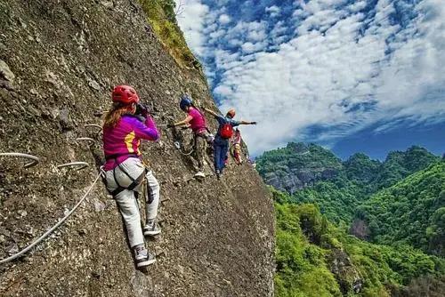 飛拉達是一項源自意大利的戶外運動,借助鐵鏈、索道等裝置,讓普通人能在巖壁上攀爬行走,一轉眼化身蜘蛛俠,與地球引力抗爭,在筆直的巖壁上行走,領略“無限風光在險峰”的別樣風景,一定會給你帶來深刻的印象。