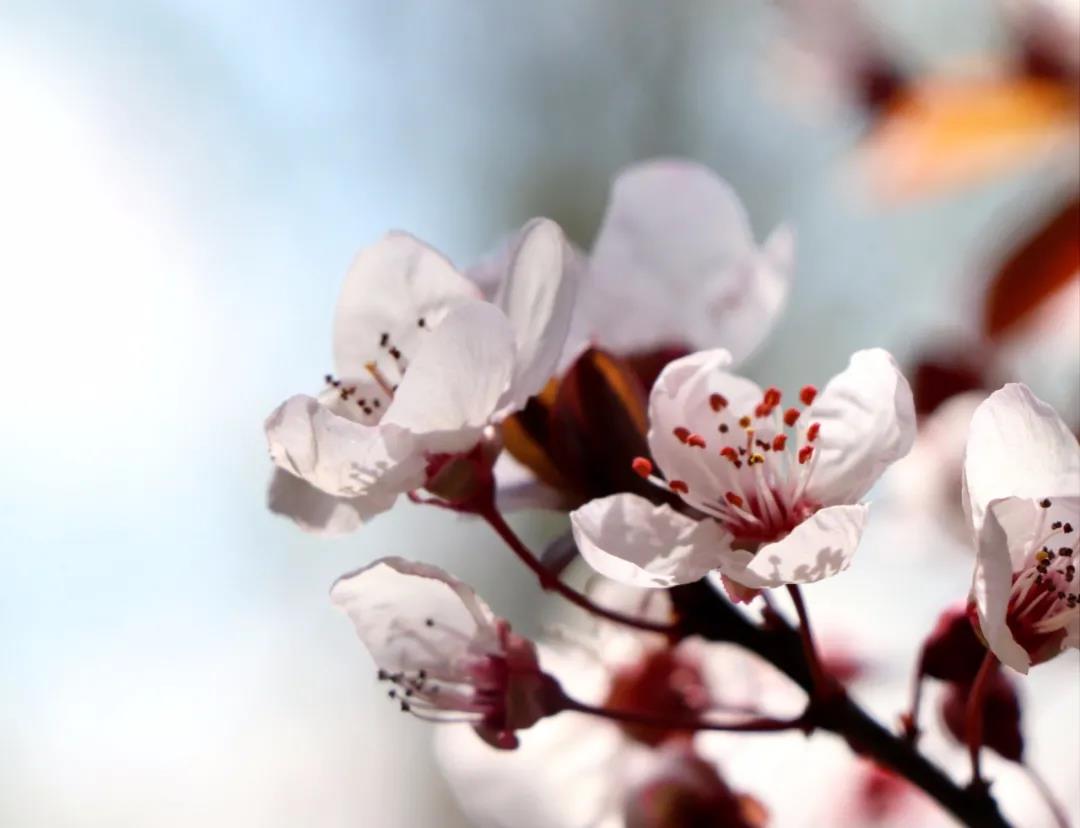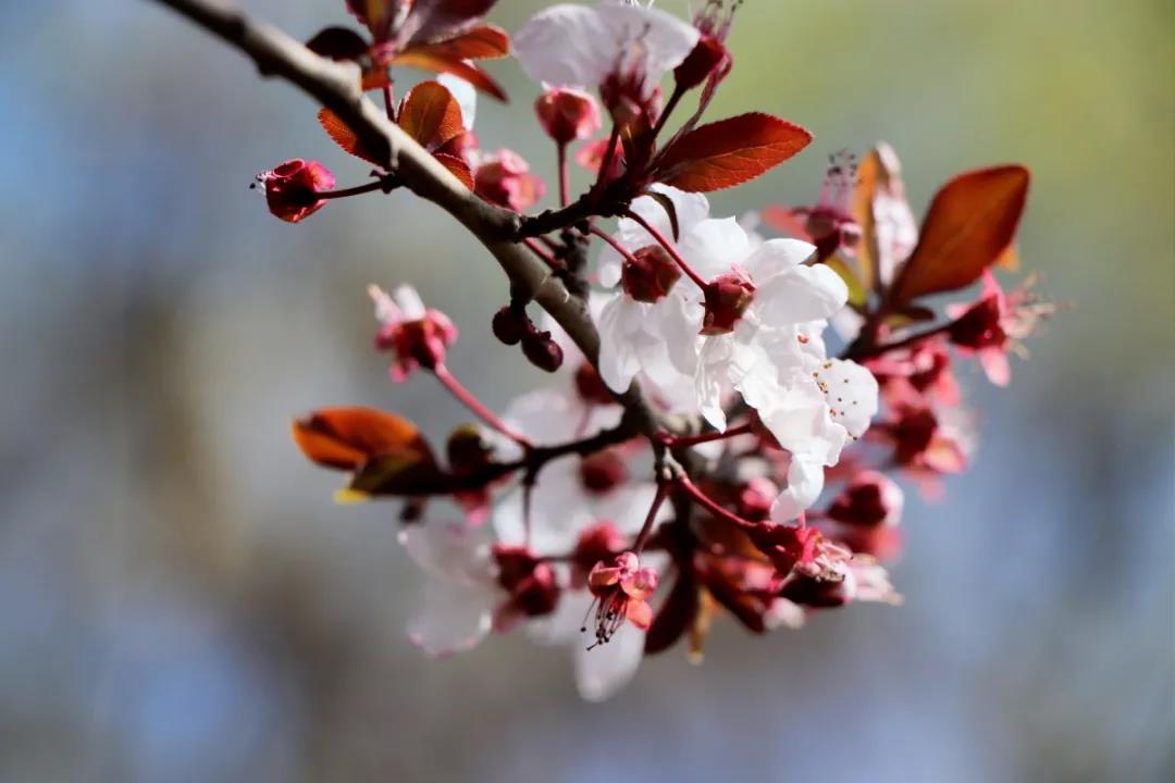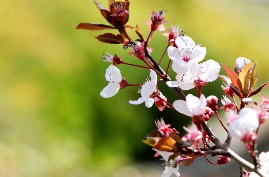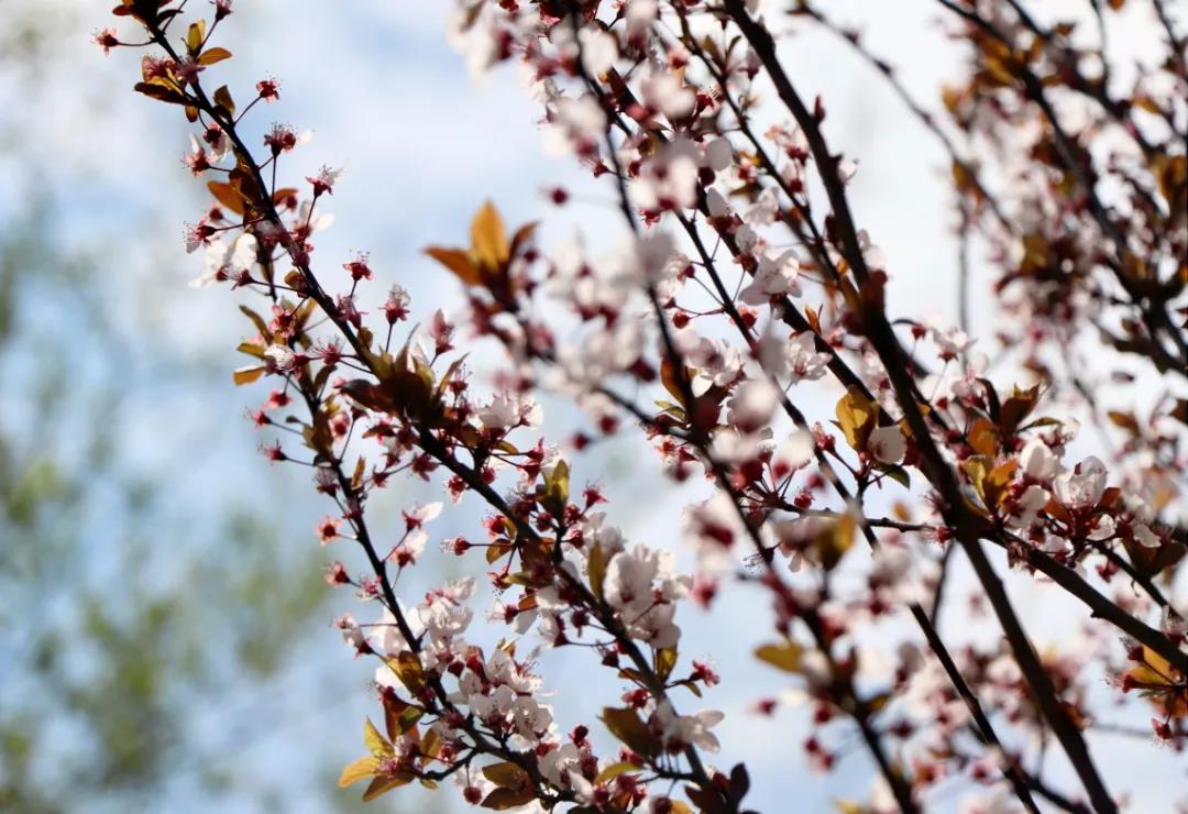 潔白的花瓣裹著淡粉色的花蕊,綴滿枝丫,如幾分冰雪寒白梅,似若許春里俏桃花,減抹三分桃俏麗,褪去兩分梅孤傲,簡潔淡然的恰恰好~